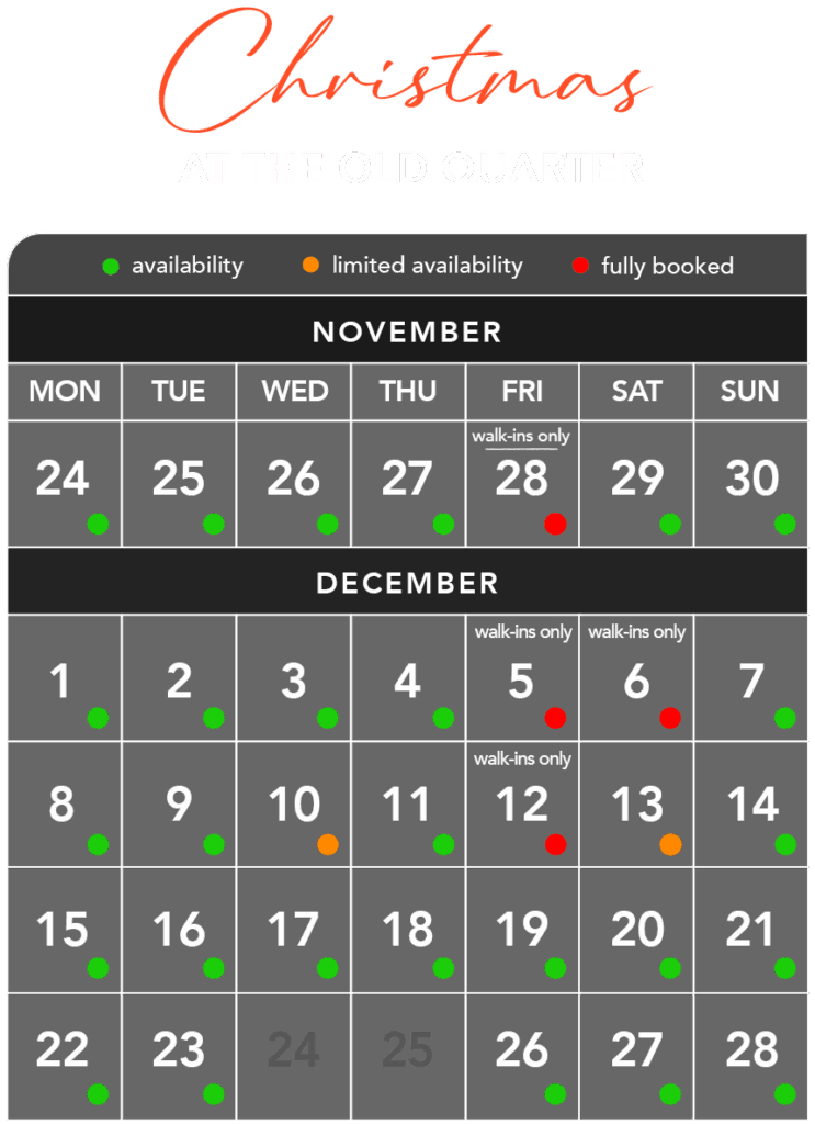 Tis the season to eat, drink & be merry, and there’s no better place to celebrate than The Old Quarter in the heart of Limerick! From office parties to catch-ups with friends, we’ve got the food, the fizz, and the festive vibes covered.